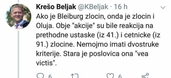 Oluju je usporedio Beljak sa Bleiburgom?! Luđaku je tisuću i pol poginulih u sukobu isto kao i pola milijuna poklanih na Križnom putu.