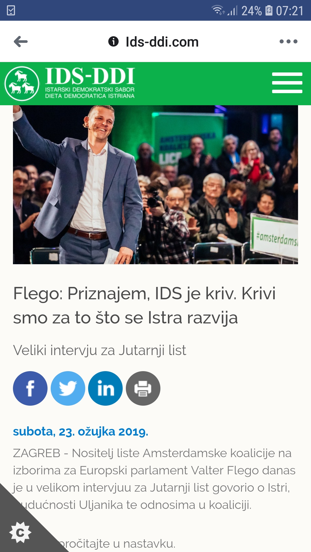 – IDS je pod navodnicima kriv zato što je sa svojim sugrađanima od Istre stvorio najrazvijeniju hrvatsku županiju čiji je BDP u rangu prosjeka EU. Ne vidim zašto bi birači kaznili IDS. Napadi na IDS pokazali su se promašenima, a građani znaju zbrojiti dva i dva. Mi ne možemo biti odgovorni jer ne raspolažemo mehanizmima koji utječu na rad brodogradilišta. To jako dobro znaju i oni koji su željeli iskoristiti agoniju Uljanika da bi naškodili IDS-u.-kaže Flego
