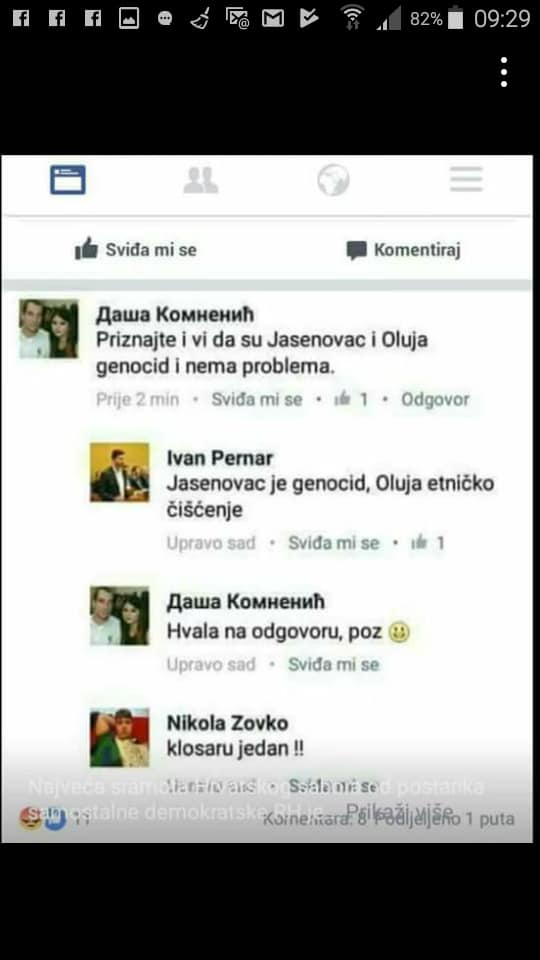 Ono što piše ova prostakuša potpuno je isto što radi Mirt, Margetić (savjetnik M. Dodika), Pusić, kao i potpuno nevažni lik koji šara po spomenicima. Svi oni veličaju srpstvo, partizaniju i komunizam. Znači bezbožništvo.
