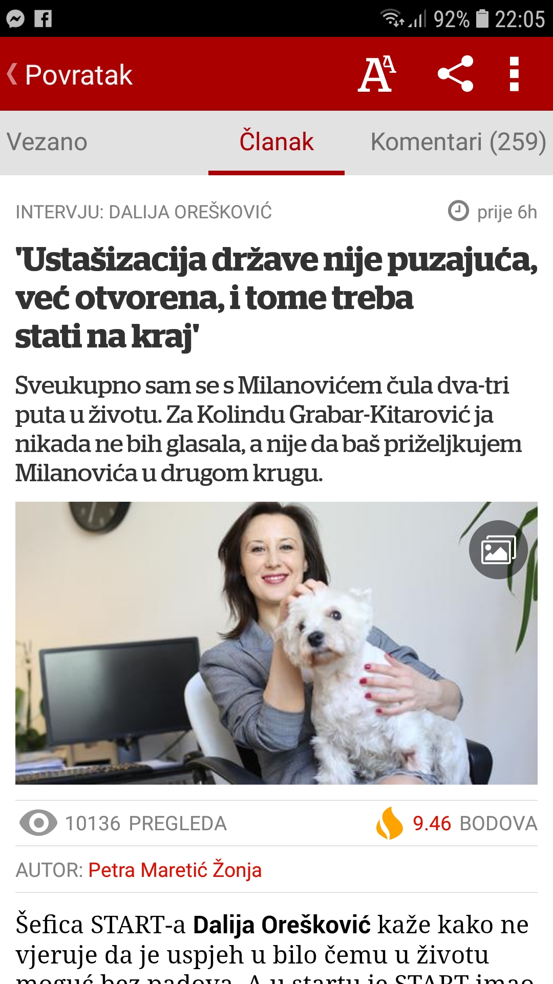 Antife su izmislile novu crvenu zvijezdu, Daliju Orešković, koja odlično živi sklopivši ugovor s Bandićem i gradom, a glumi kako će nas spasiti. I ona trabunja o ustašama. Sa psom u krilu, glumeći zaštitnicu životinja… Sve je to isti predznak bezbožništva i laži. Dalija nas želi gaziti na osnovu nekakvog antifašizma, znači, genocida nad Hrvatima.