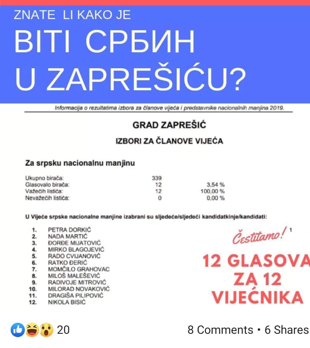 Izbori za vijeća nacionalnih manjina pokazali u brojkama koji su Srbi politički jad u Hrvatskoj, a Pupi dobio 237 glasova!