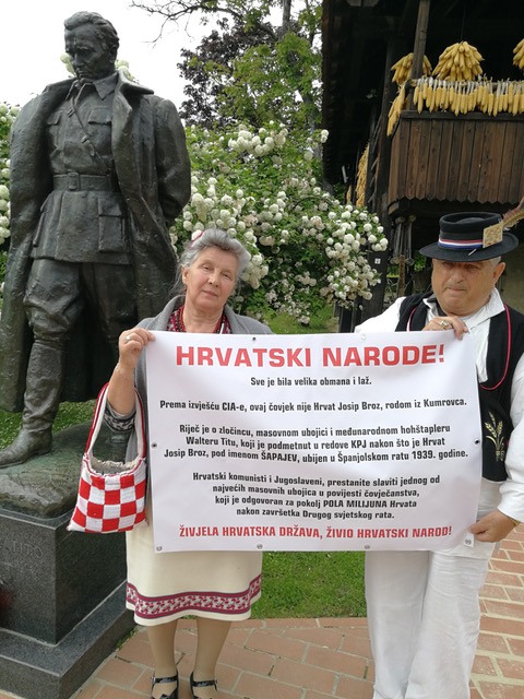 U govoru, koji se nadam da ću moći objaviti i na Facebooku (imam tehničke poteškoće) pozvao sam hrvatski narod, a posebno bivše i današnje hrvatske komuniste i Jugoslavene da konačno progledaju i odbace laž, obmanu i prijevaru, u koju su duboko vjerovali preko pola stoljeća, a, nažalost, mnogi i danas i dalje vjeruju. Drugi svjetski rat bio je laž, Komunistuička partija Jugoslavije bila je laž izgrađena na zločincu i masovnom ubojici Walteru Titu, koji je preuzeo identitet Hrvata Josipa Broza. To je ujedno i najbolje objašnjenje zašto Walter Tito nije imao nikakvih problema za pokolj preko pola milijuna Hrvata po završetku Drugog svjetskog rata. Da je to uistinu bio Josip Broz jako je malo vjerojatno da bi postupio tako krvoločno kao što se, bez imalo osjećaja krivnje, ponio masovni ubojica Walter Tito.