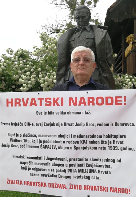 U četvrtak 23. svibnja bio sam u posjetu međimurskom glavnom gradu – Čakovcu. Nakon nekoliko provedenih sati u Čakovcu otišao sam u mjesto Kumrovec, u kojem je rođen Hrvat i komunist Josip Broz. Bio je to dugo planirani posjet, kako bi na svoj način razotkrio i upozorio na veliku laž, obmanu i prijevaru, koja je nedvojbeno duboko izvorište i svih današnjih teških problema u samostalnoj hrvatskoj državi. U Kumrovcu sam želio zabiti kolac u srce Walter Titove umjetne Jugoslavije i najveće zločinačke ideologije i organizacije u povijesti čovječanstva – Komunističke partije i komunizma. Nažalost, u Hrvatskoj je danas premalo ljudi koji imaju hrabrost javno izgovarati istinu i javno djelovati protiv jugoslavenskog i komunističkog raka, koji izjeda Hrvatsku i hrvatski narod. Ja se ne bojim i neću šutjeti sve dok ne umrem, ili dok me ne ubiju.