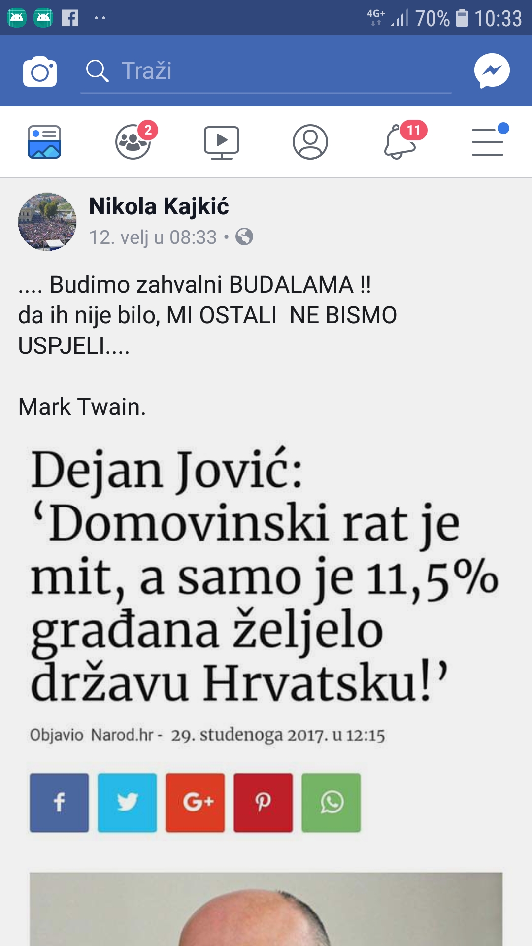 HDZ je infiltriran srpskim kadrovima i potpuno blokiran preko Plenkovića koji dopušta širenje četništva na terenu. On je danas najopasniji čovjek u svezi uništenja Hrvatske. Potpuno je uništio politički Hrvatsku. A Milanović koji je batinao branitelje pred crkvom sv. Marka htio bi biti predsjednik. Nije li ovo super opasna situacija?