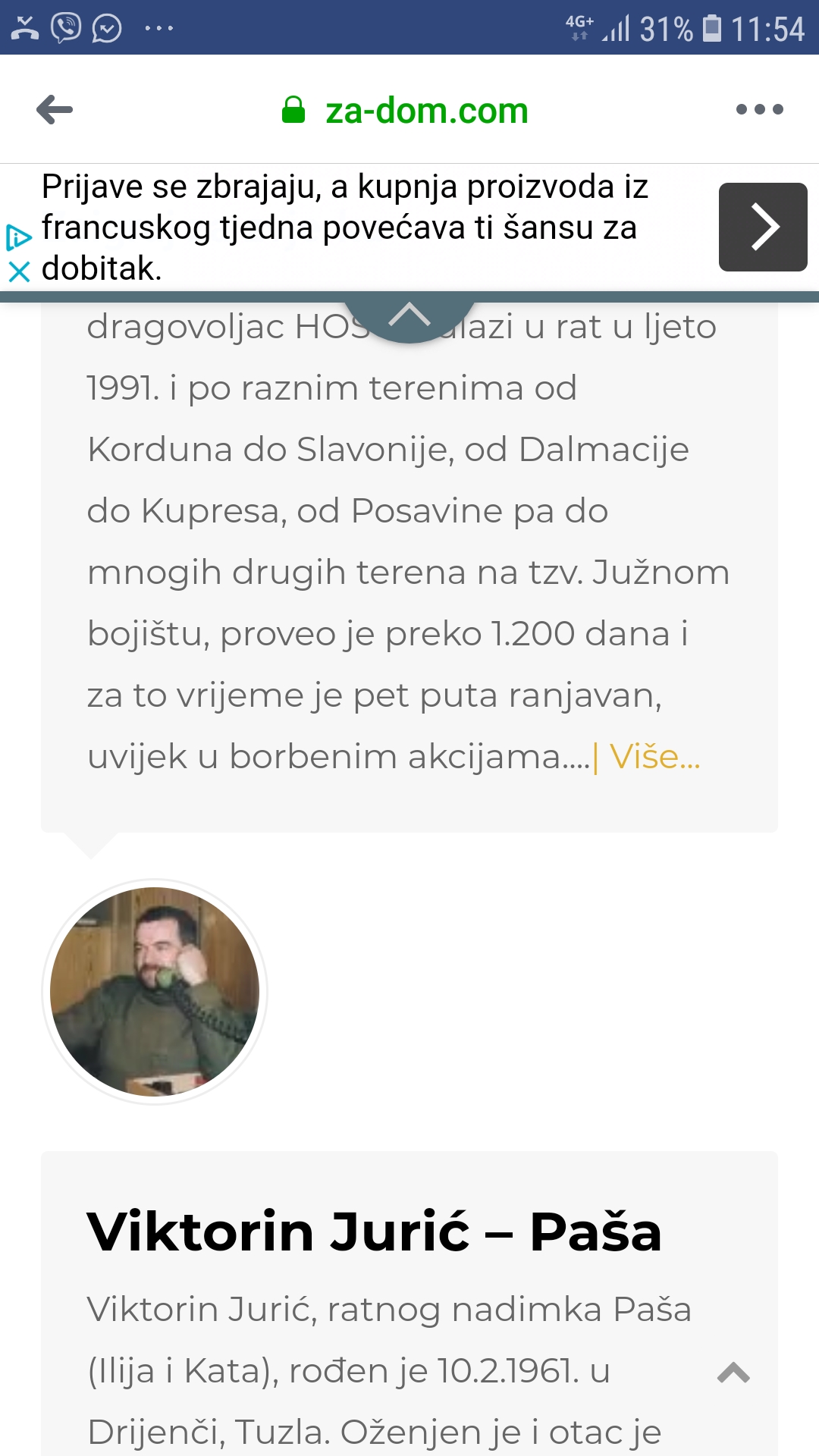 Viktorin Jurić, ratnog nadimka Paša (Ilija i Kata), rođen je 10.2.1961. u Drijenči, Tuzla. Oženjen je i otac je dvije djevojke, studentice. Prije Domovinskog rata živio je i radio u Beču, a već početkom ljeta 1991. s nekoliko prijatelja dolazi u Hrvatsku i javlja se u Stožer HOS-a u Šenoinoj te ubrzo završava u kampu HOS-a na Žumberku, odakle odlazi na prvi ratni teren, prve ratne postrojbe HOS-a, na rijeku Koranu, u Barilović, točnije u Mejaško selo. Njih dvojica su odgovorni za ovaj portal.