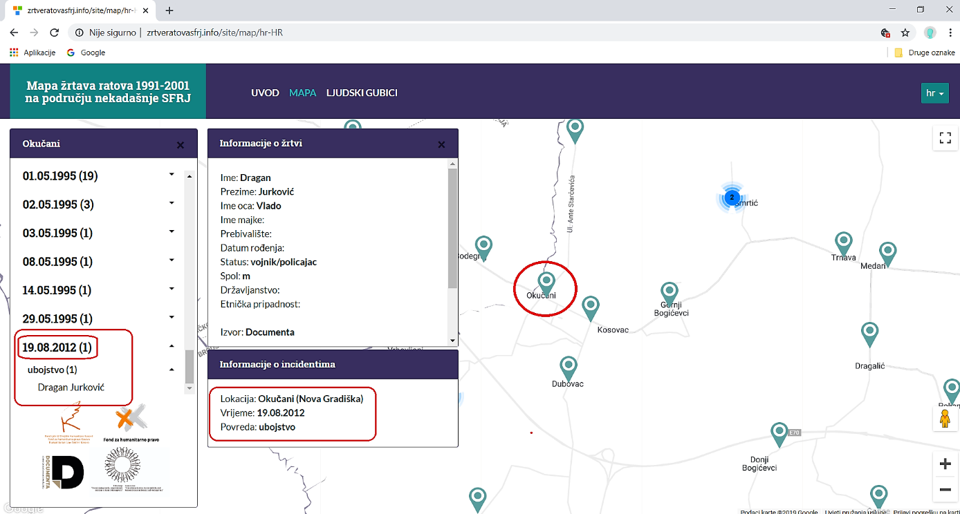 Jurković Dragana Documenta je na karti upisala da je ubijen 2012.god.