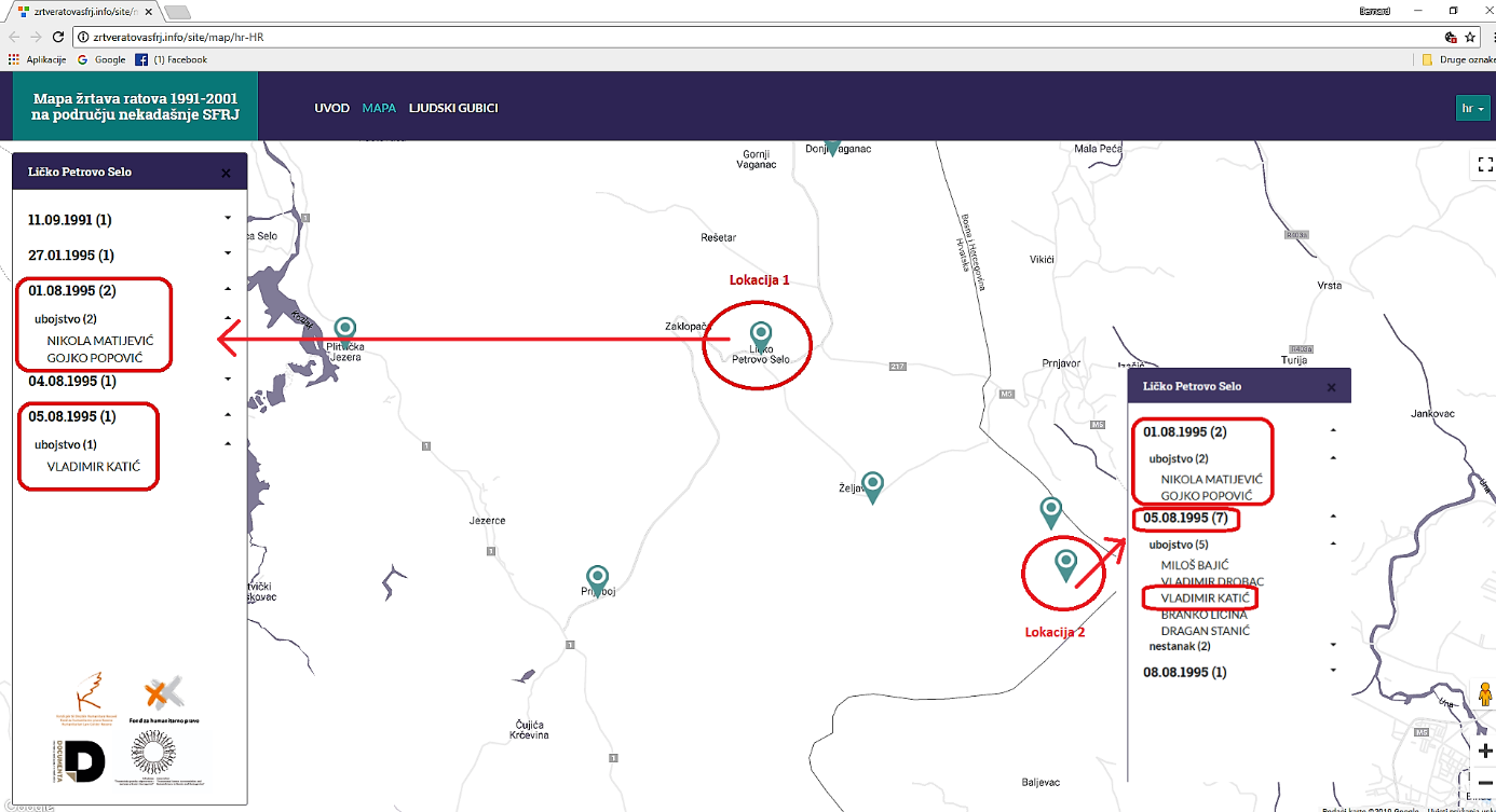 Neke osobe su uvedene na kartu dva ili više puta na različite lokacije kao što jslučslučaj Nikole