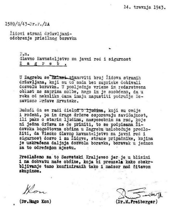 Pismo, naime, govori o želji stranih Židova da se tijekom rata sklone u NDH, a u njemu se žale i kako su “do sada (1943!) najnormalnije dobivali boravišne dozvole”.