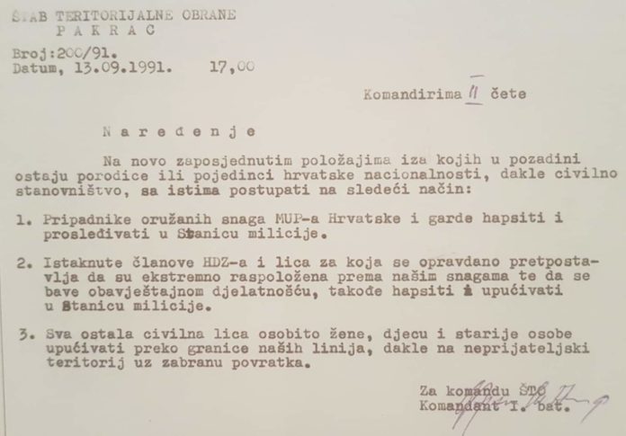 Naređenje – 1991., šovinizam, genocidnost u samo jednom dokumentu od kojeg se čovjeku zavrti u glavi.