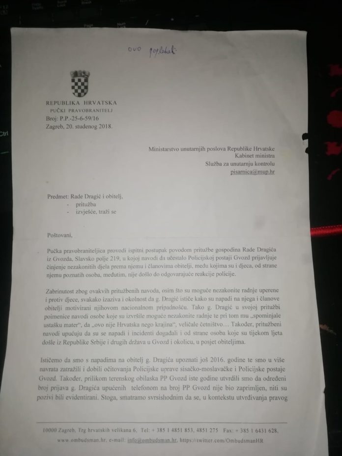 Lora Vidović pučka pravobraniteljica omražena na našoj desnici, zbog progona Thompsona napisala je i potpisala dokument u kojem jasno prikazuje stanje u općini Gvozd, nerad policije u Gvozdu, te prikrivanje od strane policije Gvozd svih pročetničkih napada na obitelj Dragić, koja je time postala ugrožena od četničkih elemenata na terenu. Zanimljivo da je jedan dopis poslala u SOA-u. Znači i SOA zna za taj slučaj.