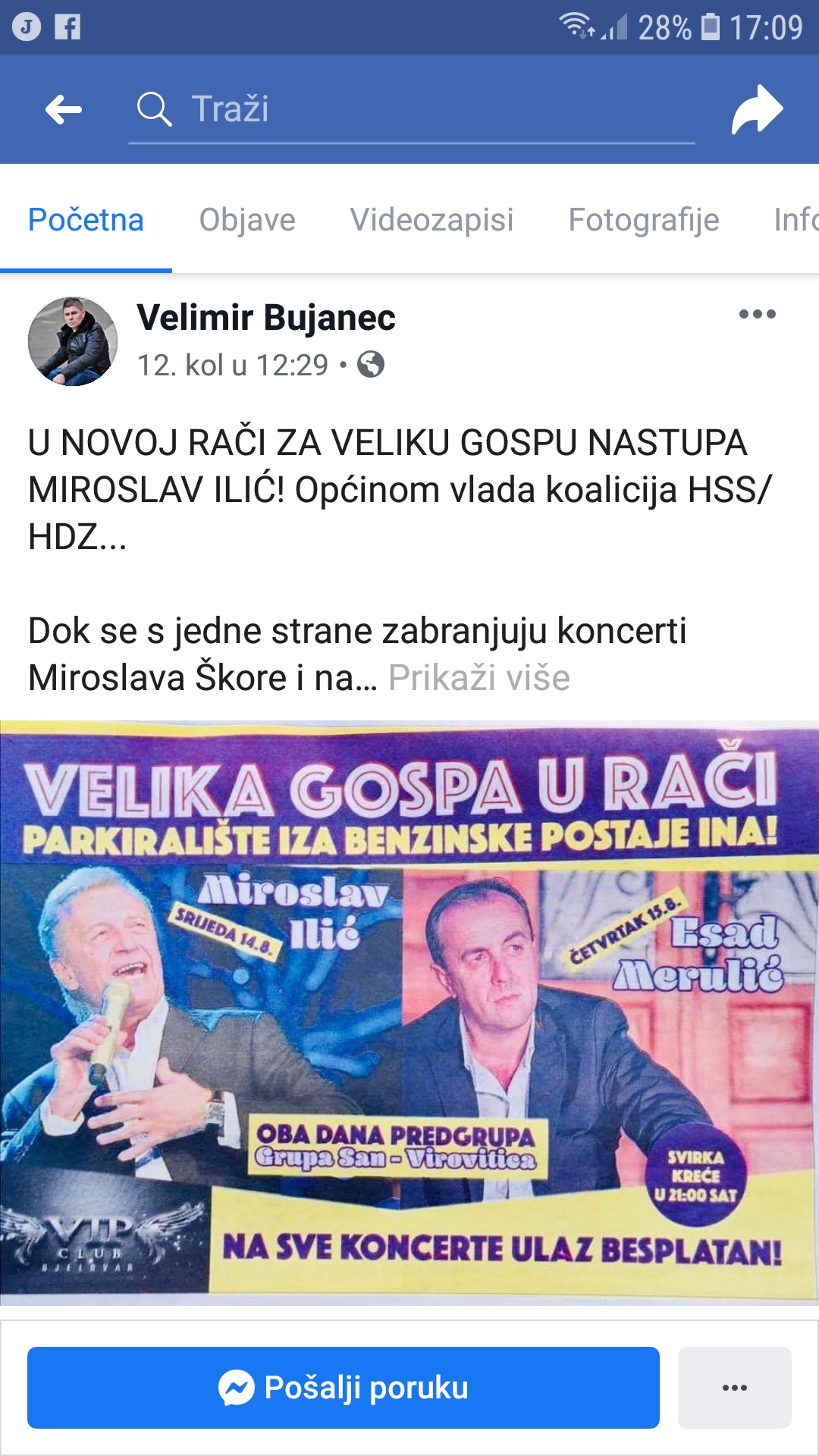 Dok se s jedne strane zabranjuju koncerti Miroslava Škore i napada MP Thompson, s druge strane – Miroslav Ilić je dobrodošao u općini kojom vlada koalicija Beljakova HSS-a i Plenkijeva HDZ-a!