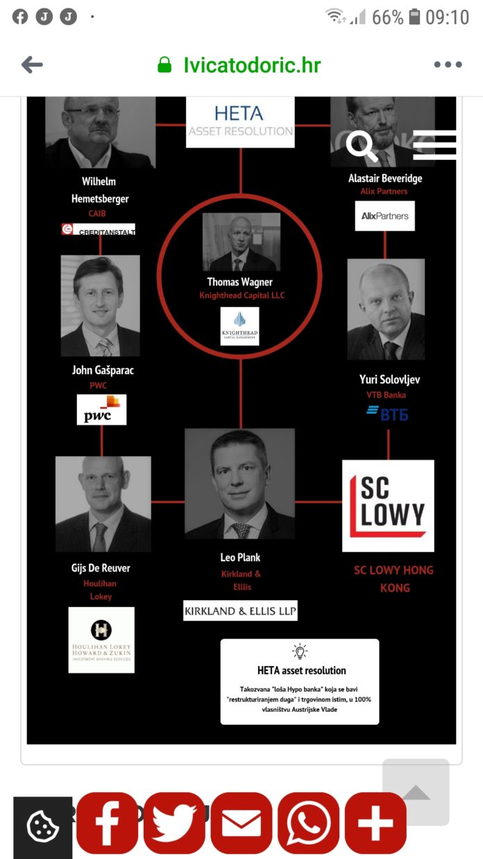 Iz činjenica je da se kompanije i osobe koje zajedno rade na projektu HETA pojavljuju zajednički, organizirano i u neprijateljskom preuzimanju Agrokora. Ta „strana GRUPA“ uz podršku nekoliko domaćih „GRUPA“ i korupcije šačice RH političara, potpuno su preuzeli Agrokor, opljačkali su ga i sada ga likvidiraju.