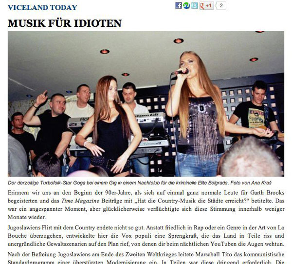Stranci uglavnom ljude koji slušaju tu glazbu doživljavaju kao jadnike ( što ubiti i jesu) jer su ritmovi turbo folka kao i tekstovi toliko idiotski da se ljudima koji slušaju takav tip glazbe namršte čela i stvori se potpuno seljački izraz lica. Na navedenim dernecima obično se pojavljuju i ljudi najnižeg obrazovanja i društvenog sloja, a jedina prednost takvih okupljanja je što se na njima uglavnom pojavljuju djevojke naperlitane i namirisane koje se ponašaju poput fufa i sponzoruša, pa je veća vjerojatnost da će dečki koji imaju nešto para za platiti cugu nešto konačno i “ubost”.-piše portal Kigo.hr