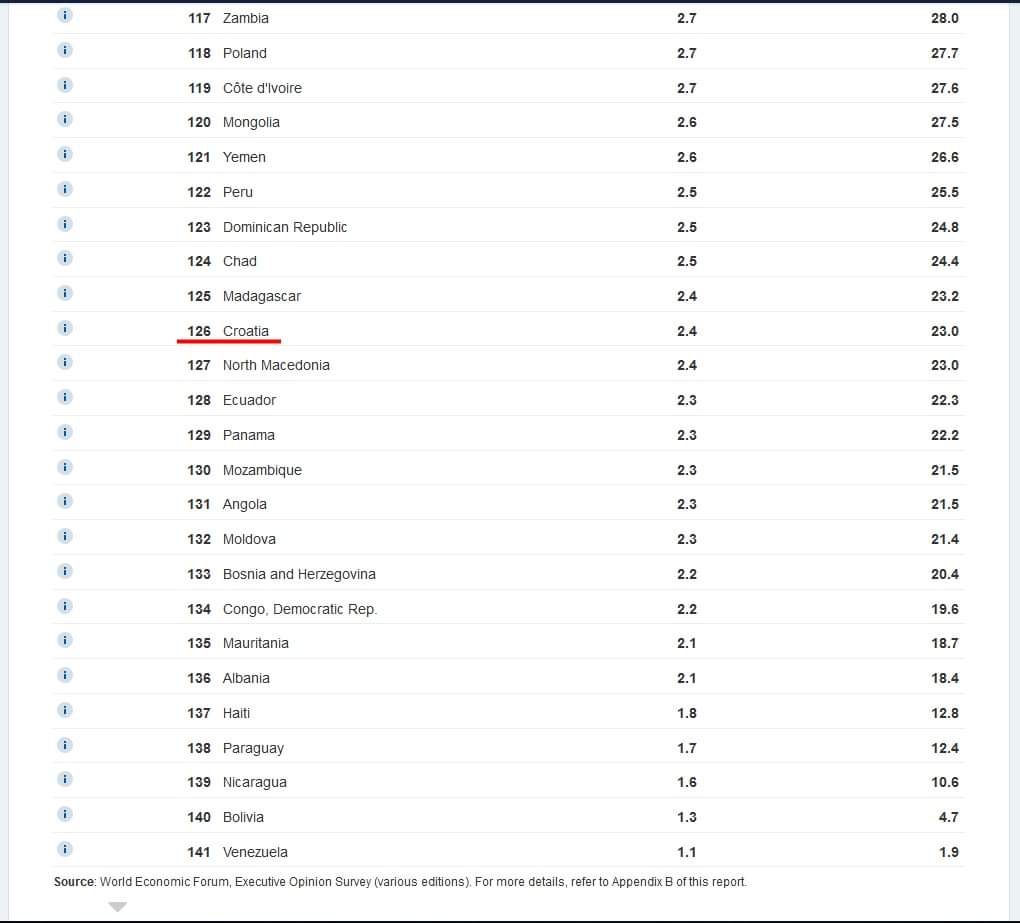U tih godinu dana Hrvatsku je prestigao Jemen, država koja se nalazi u građanskom ratu.