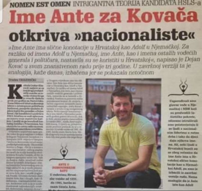 Dejan Kovač doktor ekonomskih znanosti, zaposlen na prestižnom američkom sveučilištu Princeton i HSLS-ov kandidat u utrci za predsjednika Republike Hrvatske, u koautorstvu s češkim kolegom Štepanom Jurajdom napisao je znanstveni tekst kojim su pokušali utvrditi mogu li se patriotizam i nacionalizam iščitati iz osobnog imena.