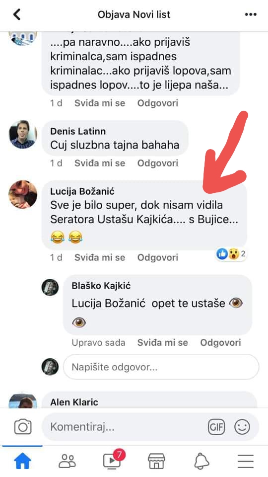 LUCIJA BOŽANIĆ visoki dužnosnik u Ministarstvu socijalne politike i mladih (Plenkovićeva ili HDZ kvota), mene javno naziva USTAŠOM, e pa drugarice Lucija dok je tvoj djed kao partizan klao i strijeljao nevine ljude i za to nikada nije odgovarao a danas se skrivate pod skutima HDZ a…..saljem Vam poruku!!!