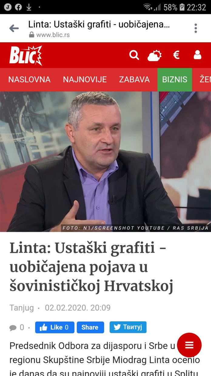 Miodrag Linta hvali Mladića i kapetana Dragana. Naziva ih herojima i borcima protiv uštaša. Znači čovjek je za četničku politiku, fašističku, koljačku, zločinačku i dijeli lekcije o ustašama. 😂