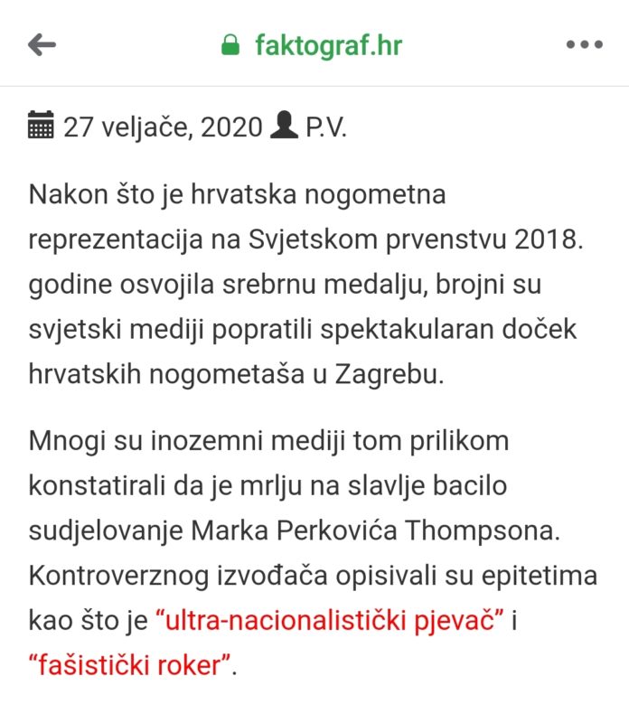 Faktograf tvrdi da strani mediji tvrde da je Thompson fašistički pjevač. Tko je progurao te teze u svijet? Kada stisnete fašistički roker ispadnu vam tekstovi Indexa.