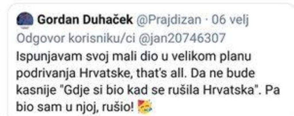 Babić je u tim stvarima sitna riba koja širi vjersku mržnju u ovoj državi, u kojoj nekadašnji prvi čovjek ne reagira na njegovo odurno ponašanje. Jelenić je mason, znači li to da od sada će hrvatska država progoniti preko novinara kršćane? Ili preko ovakvih tipova? Ako ovakve postove pušta Babić, znači li to da se komentarom protiv traže protivnici cionističkih snaga?