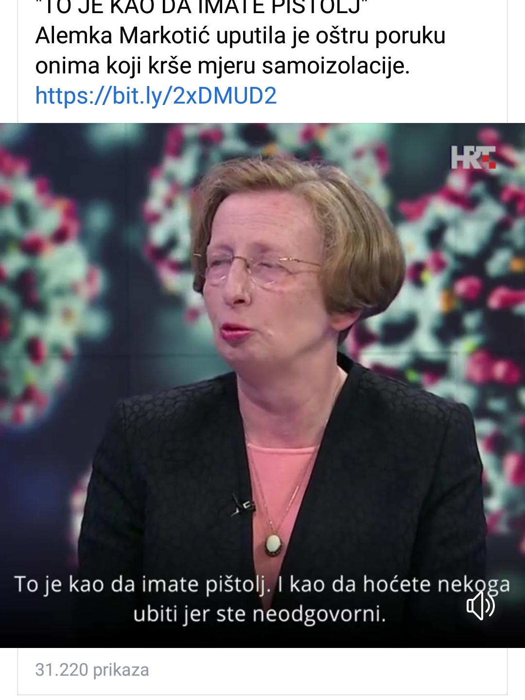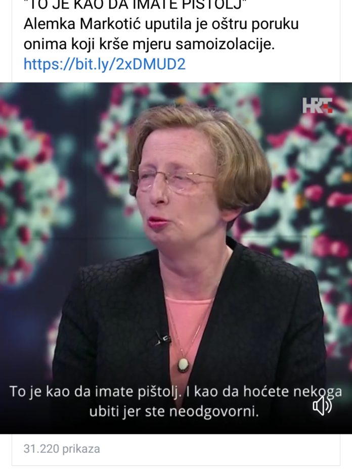 Markotićka je preko medija pokrenula linč prema zaraženima koji krše karantenu, maltene su ubojice i tako stvorila sukobu ljudi u društvu. Nije bez veze prošla američke škole komunikacije, “zavadi pa vladaj”.