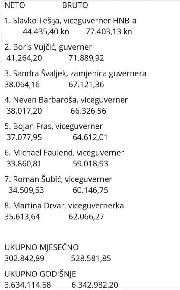 Za takve plaće ispada da vode vrh bankarstva, a mi se pitamo što to oni uopće rade.