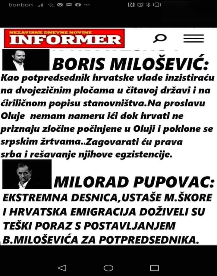 Ono što sam primijetio na ovu temu i poziciji u vladi od strane Pupovčevog igrača Miloševića je prvo skandalozan naslov teksta.