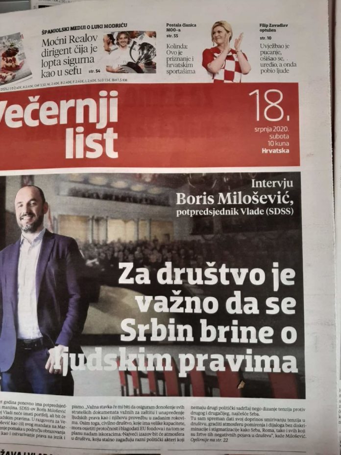 Boris Milošević ..opet i iznova vrijeđate ,omalovažavate sve Hrvatice i Hrvate ..hrvatski narod..proglašavate nas – kriminogenim, nesposobnim i neodgovornim , politički i duhovno ,kulturno , civilizacijski zapuštenim i nedoraslim narodom..koji mora opet imati “srpskog vaspitača”,žandara..”preodgojitelja”..u Vašem liku i (ne)djelu korijenski ratnozločinackog SDSS-a. Mi Hrvatski suverenisti, nećemo nikad na to ..na te Vaše drske..neprimjerene,nedostojne laži i klevete , omalovažavanja – pristati, niti Vas,protuhrvatsku političku kliku u političkom savezu sa Plenkovićem -podržati. Mi ne mrzimo nikoga..tako ni Srbe. .ali dubòko osuđujemo i preziremo svirepe,masovne i organizirane ratne zločince i zločine “velikosrba”,cetnika..ljudskog šljama i civilizacijskog otpada..Koje Vi niti primjereno osuđujete,niti se od njih jasno i javno distancirate, niti se zalažete za njihovo procesuiranje ..niti ulažete dovoljno napora za pronalazak njihovih nevinih žrtava. Naučite nešto od Nijemaca nakon denacifikacije.., od Wili Brandta. Budite povijesno korektni, realni,sućutni , obazrivi prema ogromnim žrtvama koje su neki od Vaših zlih sunarodnjaka počinili hrvatskom narodu..i tada će te naći odgovore i rješenja, na mnoga pitanja, nepotrebne dileme,očekivanja, koje i Vi dan danas imate u ovom našem ,iznimno tolerantnom , kulturnom ,civiliziranom, milosrdnom hrvatskom drustvu.-komentirao je intervju zastupnik Ž. Sačić
