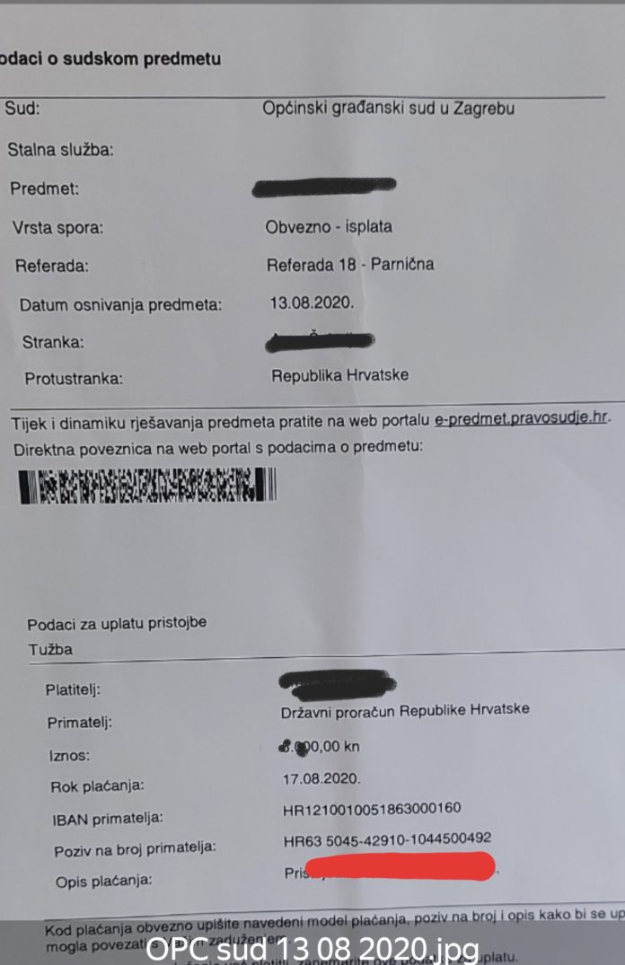 Zamolih tada gospodina iza mene (samo smo nas dvoje bili na porti) da mi on 10 m dalje preda podneske, on ih uzme s police porte (nakon što je prošao proceduru uvida u osobnu iskaznicu) i zaista mi preda podneske. Mene jedan od ovih sileđija najuri iz predulaza, kod kružnih vrata, van.