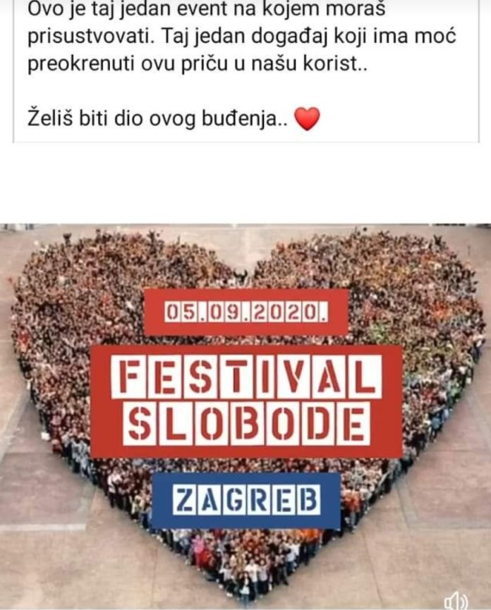 🔸 Stoga vas pozivamo da nam se pridružite na FESTIVALU SLOBODE u ZAGREBU 05.09.2020. kako bi na miran i dostojanstven način jasno izrazili svoj stav: da od svojih ljudskih prava i slobode – nećemo odustati nikad!