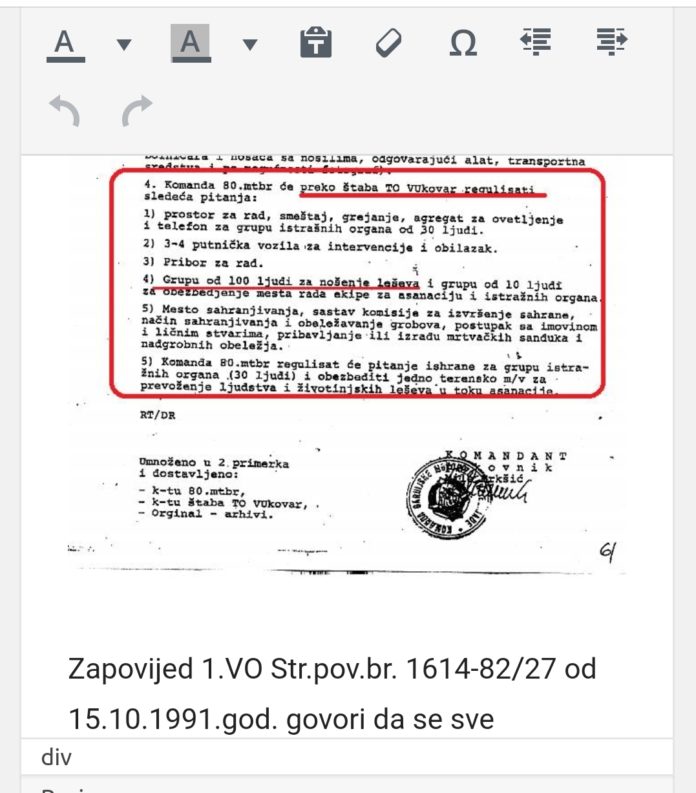 Srpski dokumenti o odgovornosti vrha JNA za genocid u Vukovaru