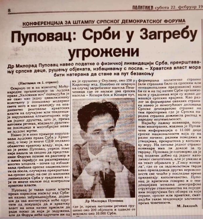 ovcara 2Što je u to vrijeme Pupovac radio? Isto je huškao Srbe da su Hrvati prekstili desetke tisuća srpske djece, odnosno u veljači 1992. godine optužio je Katoličku crkvu u Hrvatskoj za pokrštavanje 11.000 srpske djece.