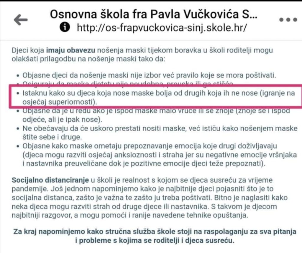 Dopunjavam svoj apel sa jednim takvim primjerom iz osnovne škole u “Sinjskoj krajini”. U prilogu maila je snimak zaslona, sa “dobronamjernim” savjetom.