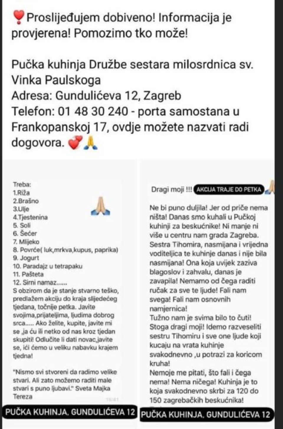 Zamoljeni smo da objavimo alarmantnu situaciju u pučkoj kuhinji koja više nema hrane za beskućnike i oni ostaju gladni. Pučka kuhinja moli za pomoć građane u donacijama hrane .