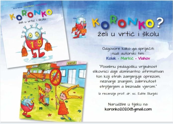 Slikovnica KORONKO želi u vrtić i školu prvi je izvor ove vrste koji s pedagoškog aspekta djeci na razumljiv i primjeren način izražavanja nudi odgovore na pitanja o koronavirusu i pandemiji COVID-19 bolesti.