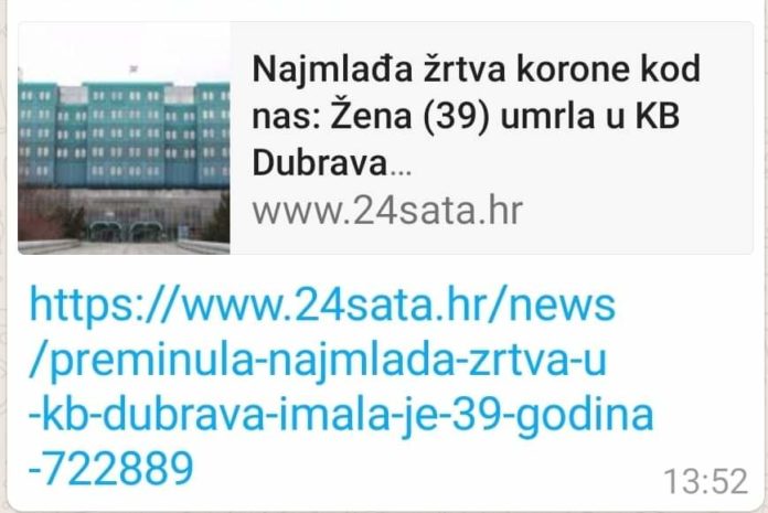 Duboka sućut obitelji preminule gospođe.-piše braniteljica i medicinska sestra Zorica Gregurić na svome zidu.