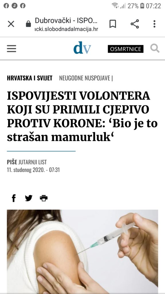 Nitko niti slova o štetnosti, niti niti slova o štetnosti 5G tehnologije, nitko niti slova o činjenici da se cjepiva izbacuju na tržište nakon 6-10 godina istraživanja.