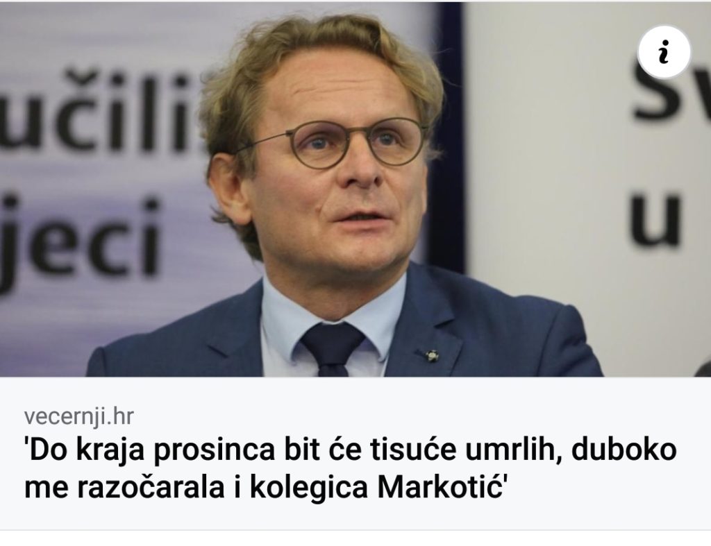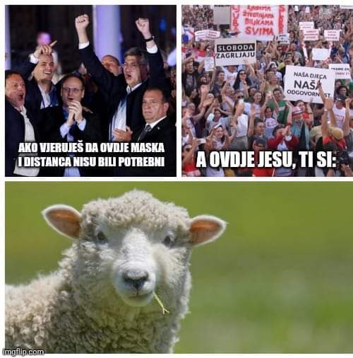 Zanemarite mišljenje stručnjačka poput znanstvenika Radmana ili Sladoljeva, Vrčaka, vjerujte svojim novinarima Telegrama, Indexa, HRT-a, 24 sata, Večernjeg lista, Jutarnjeg, Milanoviću vjerujte, Plenkoviću, oni će vas spasiti, kako su znali uništit gospodarstvo ili vas raseliti jer ste avanuturisti kako Milanović tvrdi, tako će vas sad spasiti od samih sebe, pa valjda oni znaju što je najbolje za vas.