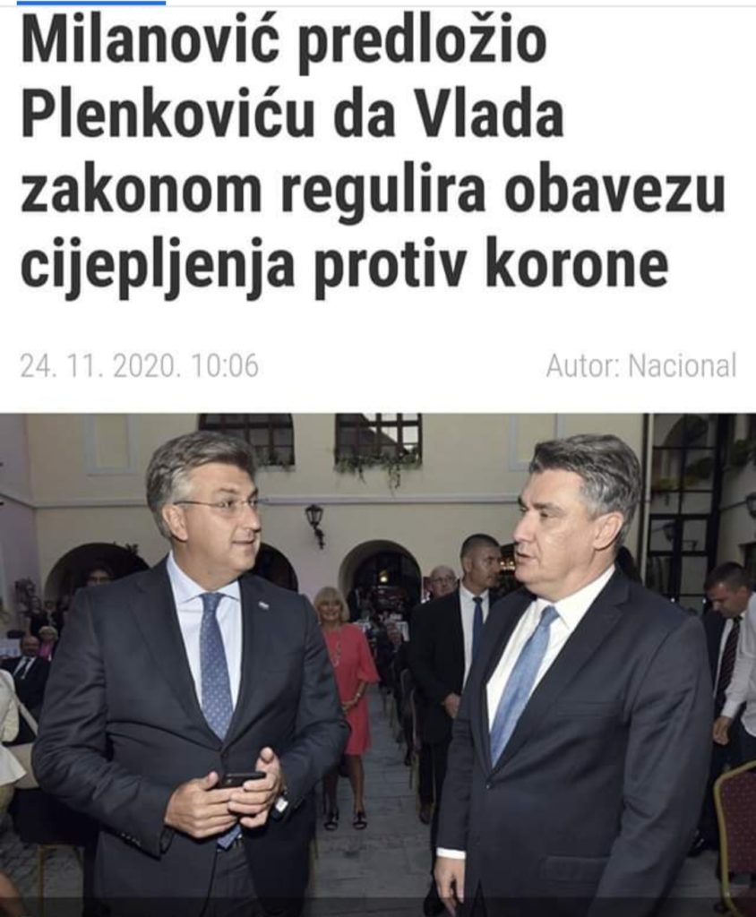 Zapravo je Milanović egzibicionist koji želi sve natjerati na cijepljenje? I u tome momentu prestaje biti navodni demokrat i ulazi u domenu koje se navodno gnuša – totalitarizma sa oblicima socijalizma, nacionalsocijalizma i fašizma.