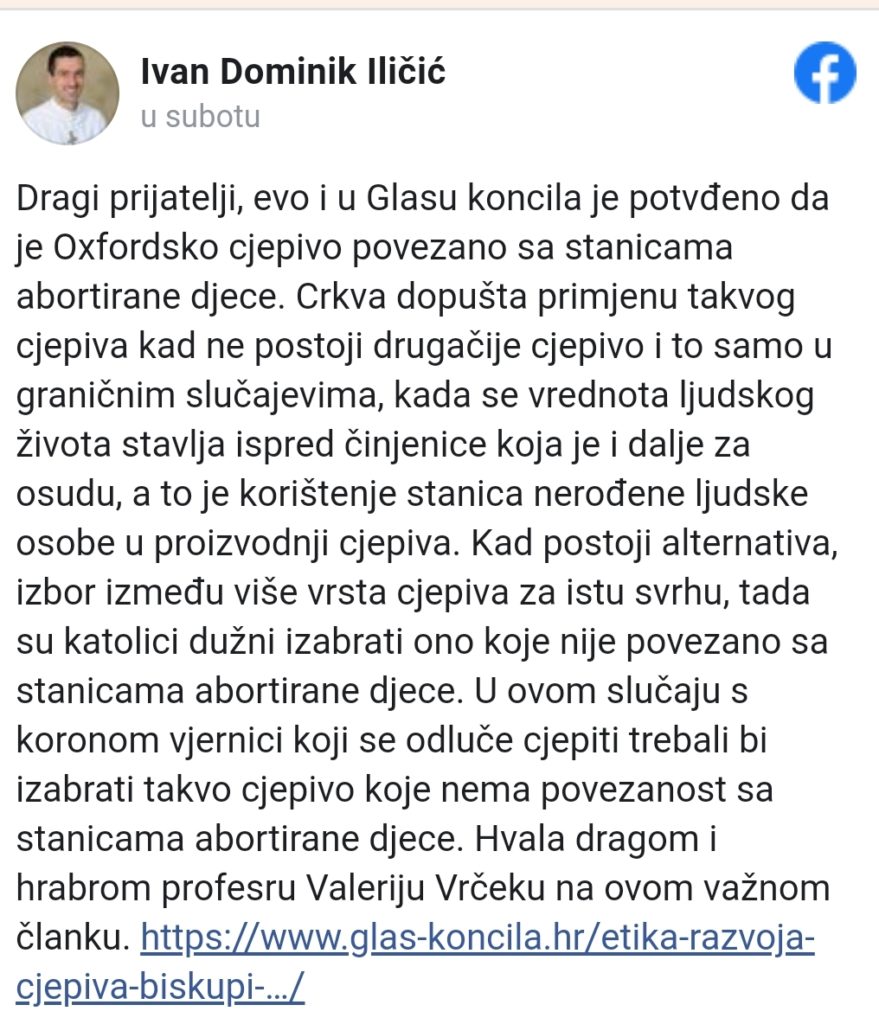 Koliko je ludilo oko cijepljenja jako govori nastup svećenika Ilinčića, koji kao školovani farmaceut objašnjava probleme oko cijepljenja i ograđivanje dekana katoličkog fakulteta u Bujici od takvih konstatacija,a koji za razliki od Ilinčića podržava cijepljenje, ali mu jedino neka cjepiva nisu dobro sjela…Bilo je emisija na HRT-u u kojoj katolički svećenik poziva na cijepljenje kao nekoj vrsti božičnog poklona, a sam Papa se “brine” da i najsiromašniji ljudi dobiju cjepivo. Sjetimo se kako se crkva makla od svećenika Delaša kada je krenuo bjesomučan progon novinara i stožeraša nad svećenikom isusova nauka.