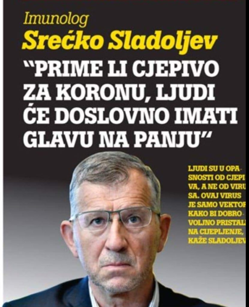 –Objasnio sam što nam slijedi po primitku invazivnog RNK cjepiva. Ukratko, nakon prve doze, “naivni” imunitet će se nadograditi u memorijski. Tu nastaje problem jer će drugom dozom brojne stanice raznih tkiva i organa, zakratko na svojim membranama istaknuti strukture kovida i time postati mete imunološkog sustava! Naše cijelo tijelo zakratko će postati gigantski inkompatibilni transplantat! Zvuči čudno, ali tako će biti.. To proizlazi iz tisuća znanstvenih radova. Zamislite milione cijepljenih ljudi u redu za drugu dozu cjepiva. – kaže nam dr. Srećko Sladoljev.