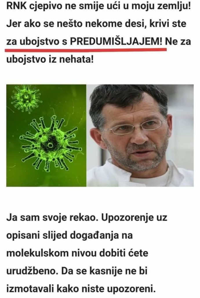 Dr. S. Sladoljev: RNK cjepivo ne smije ući u moju zemlju! Jer ako se nešto nekome desi, krivi ste za ubojstvo s PREDUMIŠLJAJEM!