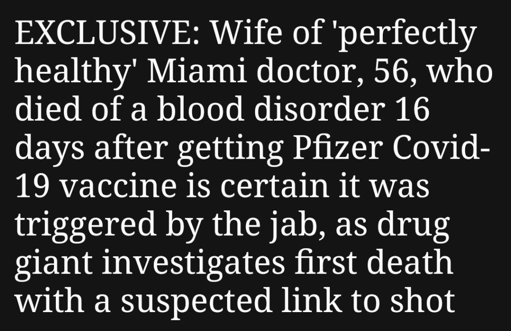 Ožalošćena supruga vodećeg liječnika s Floride ispričala je kako je njezin ‘savršeni’ suprug umro od misteriozne bolesti krvi – samo nekoliko dana nakon što je dobio cjepivo Pfizer Covid-19.