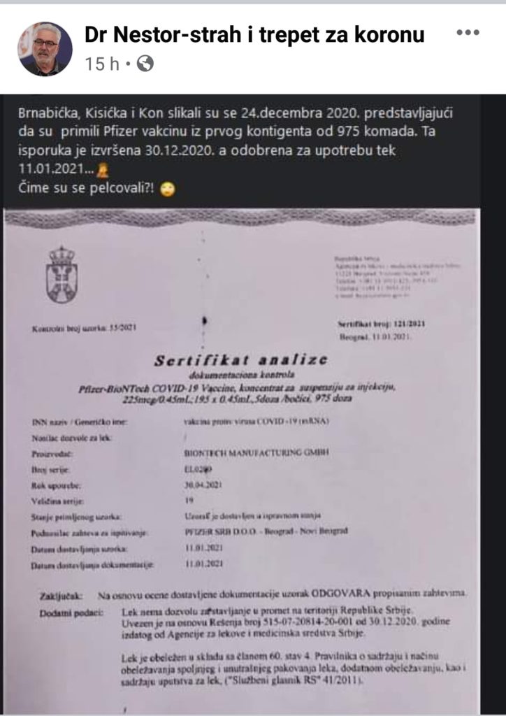 Dr. B. Nestorović je vrlo glasno upitao srpske oficijelne stožeraše kako su se mogli cijepiti ako još cjepivo nije došlo?