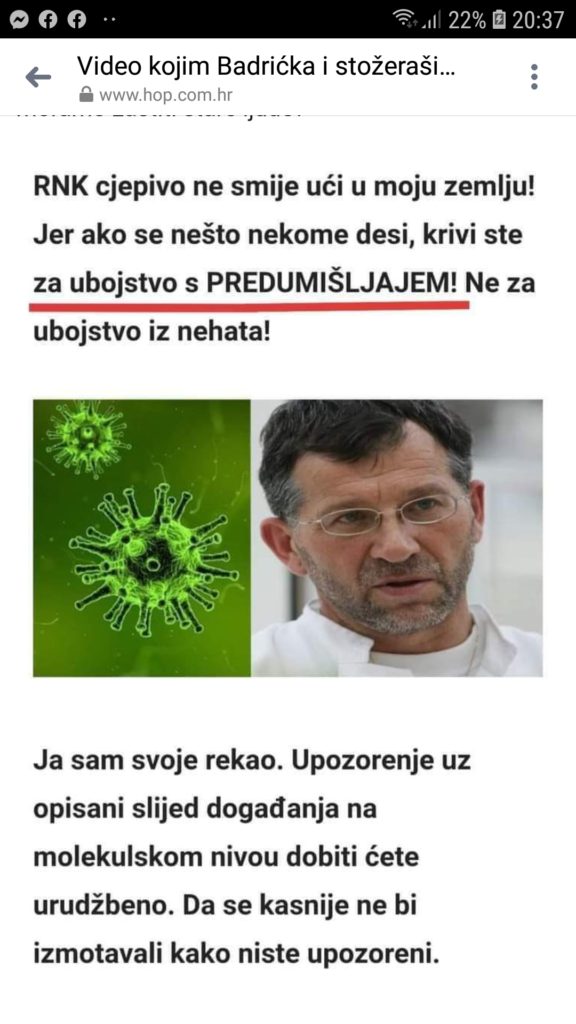 Svaki dan iznova gledam, da ne zaboravim, kako ministrica Divjak na pressici 13.03. izjavljuje da se sa suradnicima već više od mjesec dana priprema za on-line nastavu (dakle, puno prije prvog slučaja “corone” u Italiji, te vašu od sutradan 14.03. na kojoj kažete da se osobno pripremate već dva mjeseca (od 14.01.) za ovu plandemiju tj puno prije nego je kineski Wuhan stavljen pod karantenu i prije nego se oglasila WHO s izjavom o oprezu od moguće pandemije. Uopće ne dvojim da ste doista mislili ono kad ste rekli: “Mi smo u ratu!”