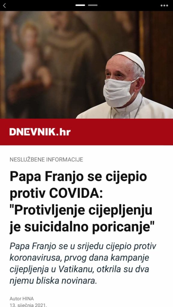 Dr. Nestorović utvrdio da se srpska premijerka ‘cijepila’ prije dolaska cjepiva (?), a Papa necijepljenje nazvao suicidalno poricanje -hoće li ukinuti sakrament pomazanja za one koji se prethodno nisu cijepili?!