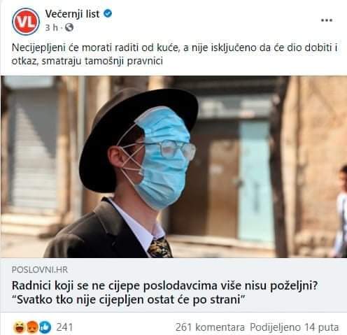 Iz dana u dan su se mijenjali simptomi tog virusa. Potom se tvrdilo da maske ne štite od virusa, a danas traže da ih se nosi i nakon cijepljenja. Nakon toga se pojavilo više inačica tog virusa. Stručnjaci koji drukčije misle o tom nemaju pristup medijima jer netko se boji istine. Ne vrše se obdukcije nad umrlima, a sve to izaziva sumnju u uzroke smrti od tog virusa. Gdje su nestale smrti od gripe i smrti od drugih oboljenja? Drže li bogatuni i političari puk za budale?