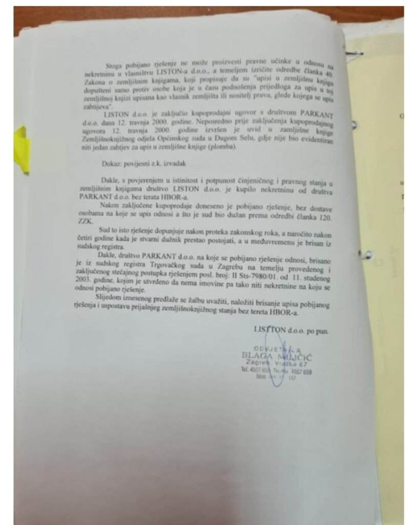 Međutim, na sutkinji Općinskog suda je obveza utvrditi sve činjenice u postupku na kojima temelji odluku, (drugostupanjski sud ne utvrđuje činjenice) pa je sutkinja Sanda Hrsto bila dužna utvrditi činjenice: da stečajna masa iza Liston d.o.o. ne postoji, da založno pravo u korist ovrhovoditelja Hrvatske banke za obnovu i razvitak nije upisano u zemljišne knjige, da Hrvatska banka za obnovu i razvitak nema aktivnu legitimaciju u ovršnom postupku broj Ovr 144/2020, i da u odnosu na ovršenika Liston d.o.o. (koji ne postoji) nema ovršne isprave, da je založno pravo zasnovano na drugoj nekretnini, a ne na nekretnini u vlasništvu ovršenika, o čemu dokazuju javne isprave u izvorniku koje su dostavljene u spis, a koje isprave je sutkinja potpuno ignorirala, kao i pravomoćnu i ovršnu odluku istoga suda, o istoj stvari, na temelju istih isprava (Ovr 742/01 od 02.01.2002. g. kojom je ovrha odbijena)., da se dostava sudskih pismena vrši nepostojećoj pravnoj osobi i neovlaštenim fizičkim osobama, da se čitav ovršni postupak već 17 godina vodi jednostranački na temelju tzv. “ovršnih isprava” starih 29 godina, kao i da je ovršenik pravna osoba koja je prestala postojati, a PREKID POSTUPKA NASTUPIO JE PO SILI ZAKONA.
