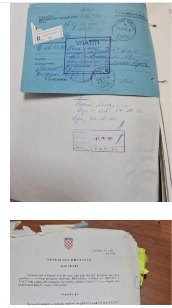 3. Sutkinja Sanja Zec, u svojstvu predsjednice Općinskog suda u Sesvetama, kaže da je načinila uvid u ovršni spis broj Ovr 144/2020, a istovremeno nije uočila da se vodi paralelno i postupak radi osiguranja zasnivanjem založnog prava radi iste tražbine na nekretninama i to Pu Ovr 54/2019 godine ranije broj I-1/92 (u kojem su bili stranke Parkant d.o.o. i Hrvatski fond zarazvoj) u kojem postupku nije donešena niti jedna pravomoćna odluka, niti se ista može donijeti obzirom da dužnik iz tih isprava ne postoji. Takvo postupanje suda predstavlja čisto silovanje zakona i Ustava RH i grubo nezakonito zadiranje u privatno vlasništvo.