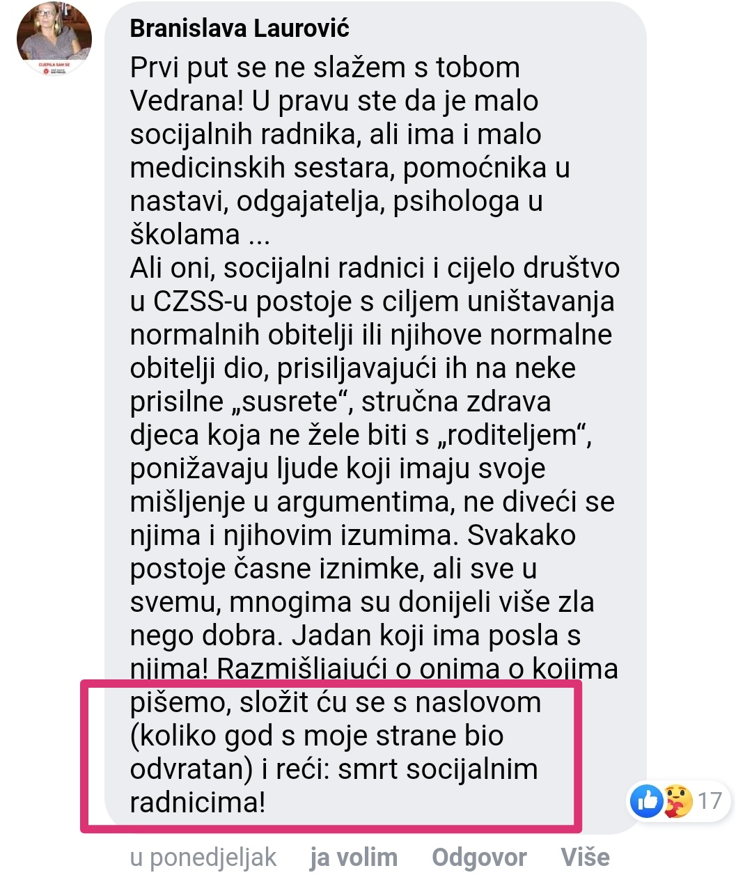 Takvi zakoni oduzimaju čovjeku slobodu i dostojanstvo koji su temelj ljudskih prava. Jesu li takve izjave javne ili osobne uopće nije bitno jer one vrijeđaju i ponižavaju sve one koji misle drukčije. Zar to nije govor mržnje, ako takvo nešto postoji? Naime, radi se o ozakonjenju ljudskih perverzija i uništenju hrvatske samobitnosti. To je nedopustivo, posebice za one koji se javnosti predstavljaju kao avangarda, dakle, intelektualci. Oni koji takve zakone podržavaju u Saboru su sljedbenici, a ne odvažni i odgovorni političari koji brane interese hrvatske države i svoga naroda.