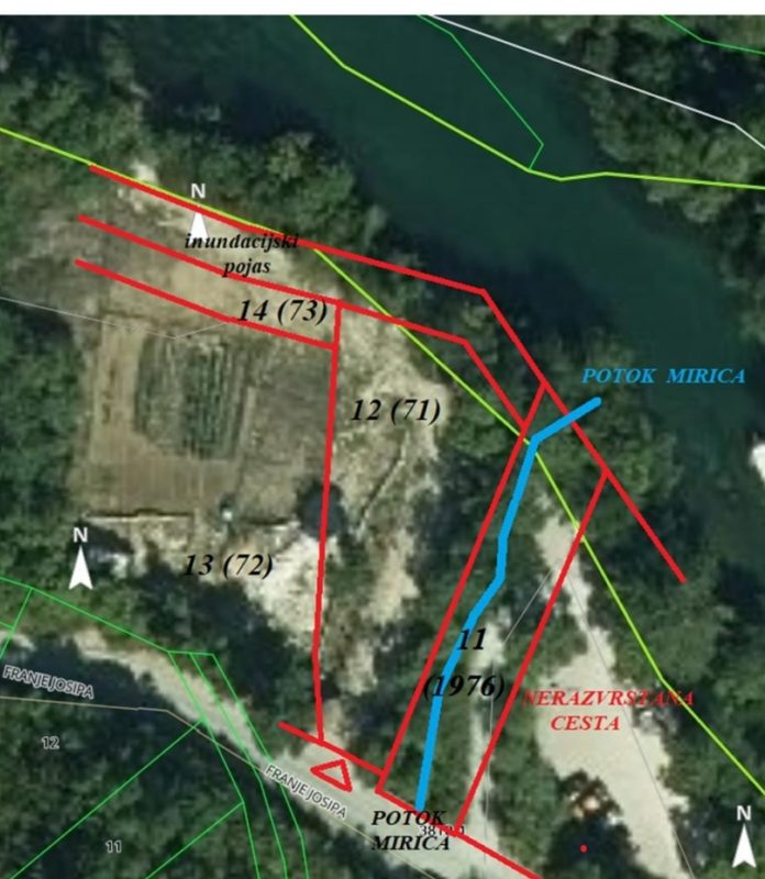 Iz „foto – dokumentacije“ imenovanog sudskog vještaka gospodina Ivana Barbalića, dopl. inž. geod. razvidno je da „korita“ Potoka Mirice nema – gdje je?